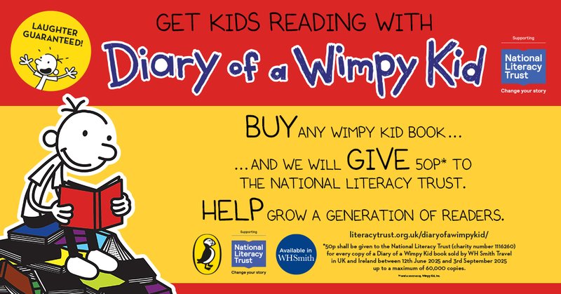 On the campaign and charity front, WHSmith has joined with the National Literacy Trust for the Get Kids Reading with Diary of a Wimpy Kid campaign. Every book sold in WHSmith Travel stores until September supports literacy projects in areas with low reading enjoyment. The statistics behind this initiative are sobering: only one in three children and young people enjoys reading in their spare time, the lowest rate in 20 years.